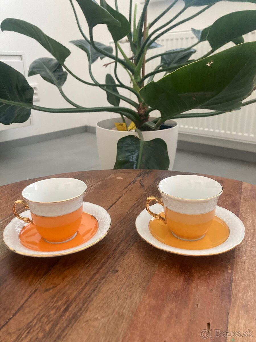 Zberateľské šálky v peknom stave.Jedna oranžová,druhá horčicová farba:Bezpečne zabalím!!!Osobný odber,dobierka,platba vopred.