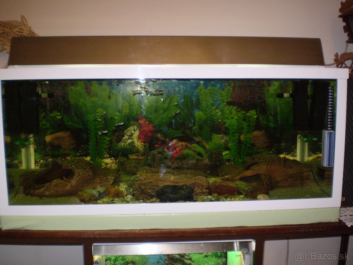 Predám 100cmx40cmx40cm - 160litrový akvárium vložený do hliníkového rámu.Predám zariadený akvárium ako je na fotkách komplektne s príslušenstvom -svetlo,filtre,dekorácie,rybičky atd....Akvárium je 5x vrstvou silikonu pretesnený a potom vložený do hliníkového rámu.Medzera medzi sklom a rámom je vyplnená - utesnená silikonom. Nevedeli sme lepšie fotky spraviť.Inzerát je platný do zmazania/okres Nové Zámky/N.t.č.0908464142 Pozrite si aj moje ďalšie inzeráty.