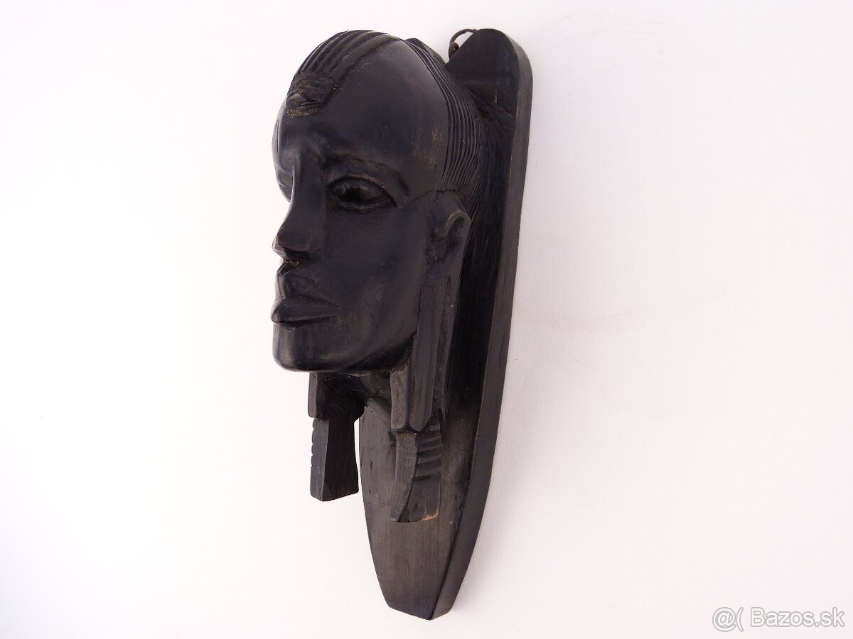 Ponúkam na predaj Africkú závesnú sochu - bustu Maasai bojovníka, Tribal Art vyrezávaná z ebenového dreva, pôvod južná Kenya, okolo roku 1930, výška 22cm, šírka 6cm, hĺbka 10.5cm, veľmi dobrý stav bez poškodenia.