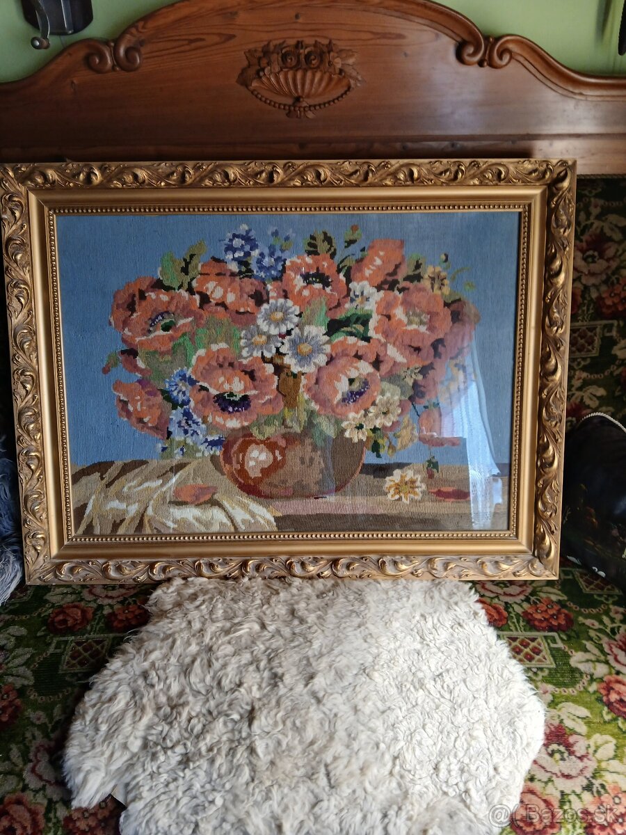 Predám nádherný, ručne vyšívaný obraz – gobelín s motívom bohatého kvetinového zátišia. Ide o precíznu a časovo náročnú ručnú prácu, ktorá je vo výbornom, zbierkovom stave.