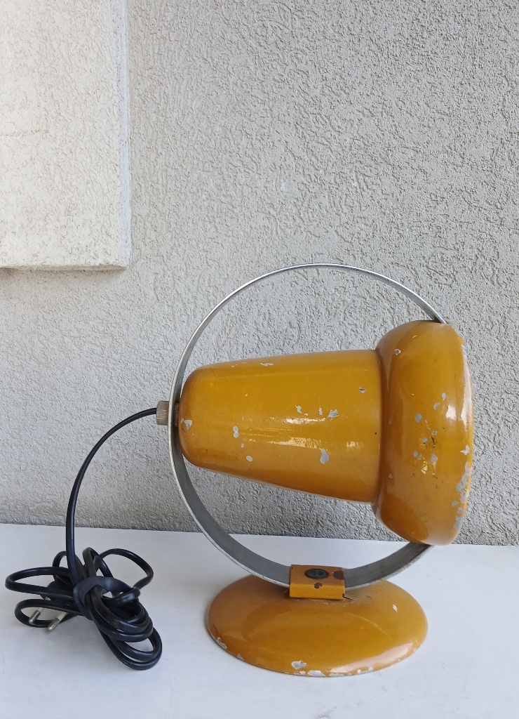 Predám vintage kovovú stolnú lampu Philips zo 70-tych rokov minulého storočia, rozmer: 25 x 20 cm, horčicovo-žltej farby. Výrobca Philips, navrhla ju dizajnérka Charlotte Perriand. Nesie známky používania - viď.foto.