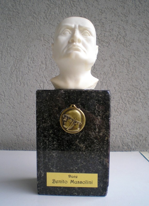 Predám bustu Benita Mussoliniho na mramorovom podstavci, výška celkom 23 cm. Len na zberateľské účely.