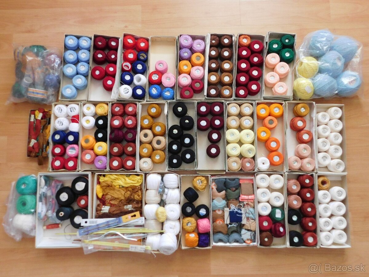 Bavlnky na vyšívanie, háčkovanie a šijacie potreby.