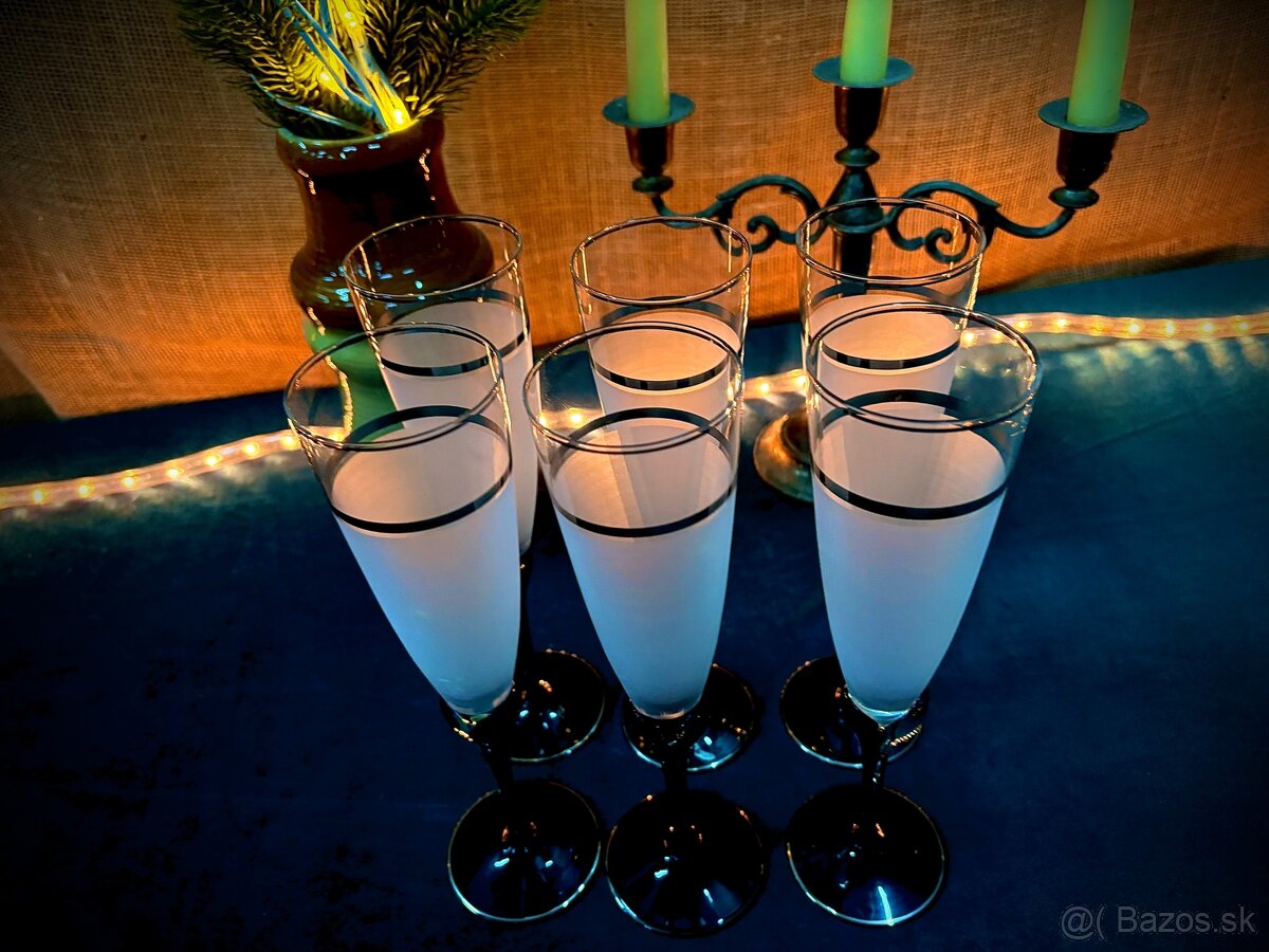 Predám štýlovú sadu 6 ks vysokých pohárov na sekt v matnom prevedení so strieborným lemom.