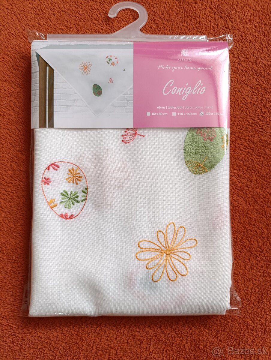 Predám krásny úplne nový, nepoužívaný, zabalený biely veľkonočný obrus s jemným veľkonočným motívom v rohoch. Obrus je kvalitný.
