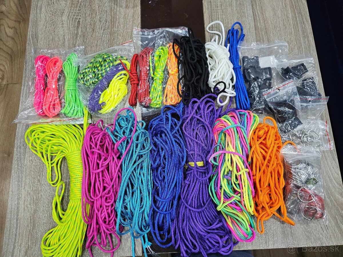 Predám paracord 550 rôznych dĺžok a farieb, len všetko spolu. Spolu s paracordom predávam aj kovové a plastové očká, pracky, klipsne, zapínanie normálne, aj s poistkou.