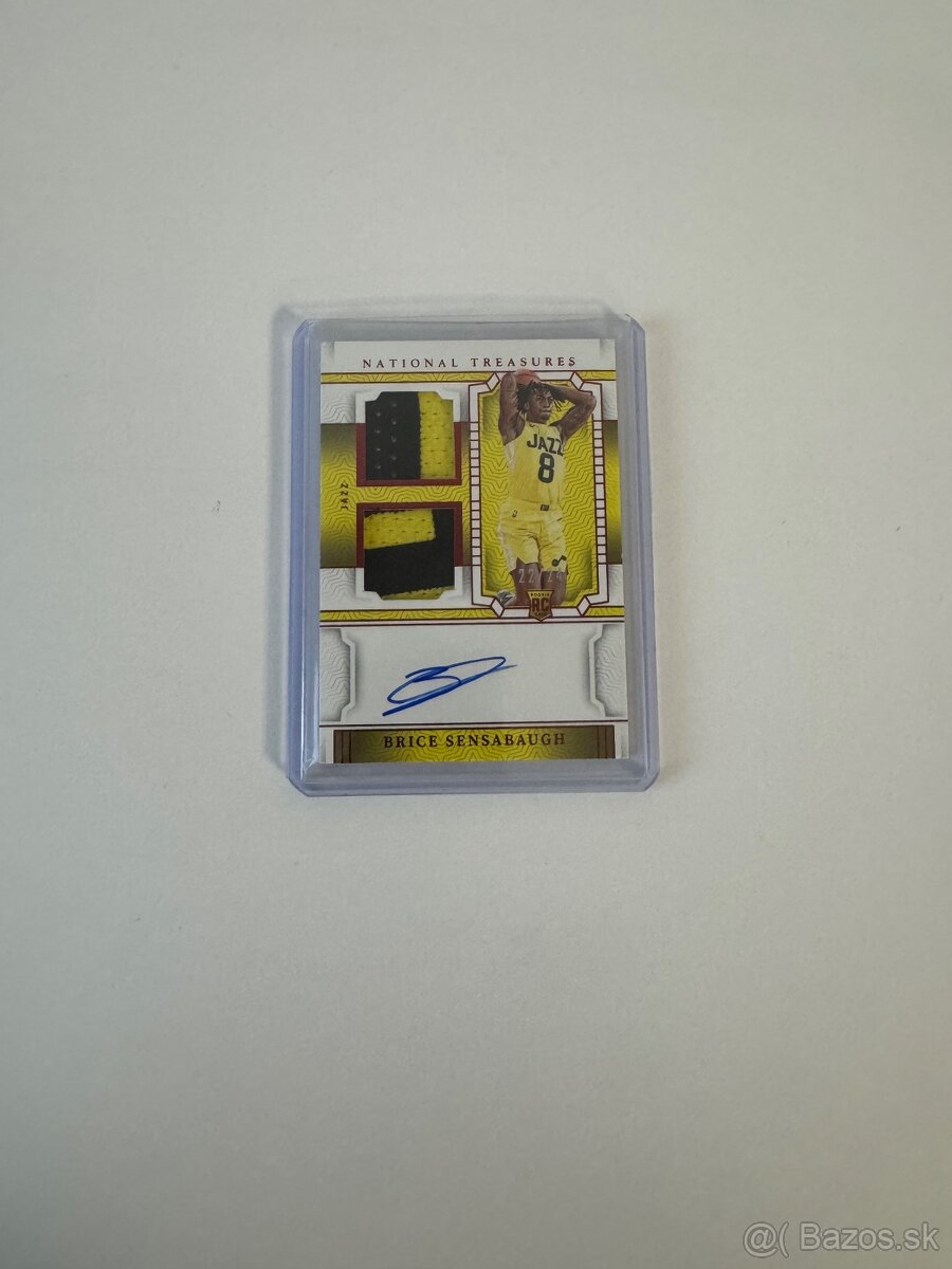 Zberatelska velmi hodnotna basketbalova karticka Panini National Treasures Brice Sensabaugh s kuskom dresu Autograph RC/24