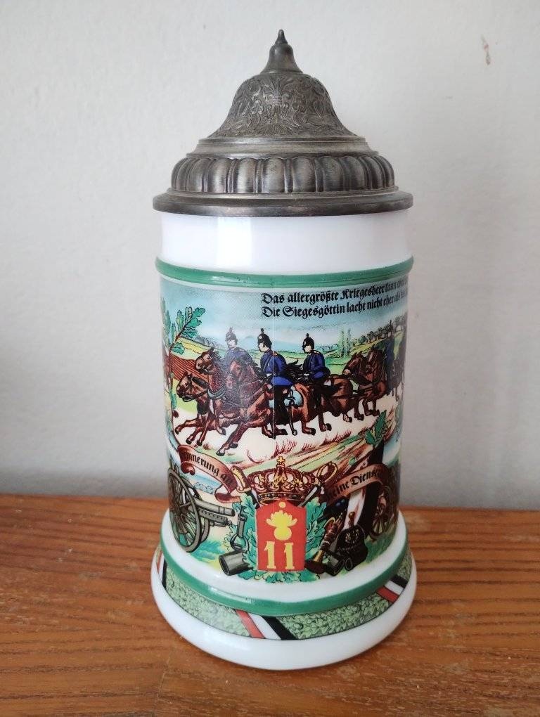 Stary nemecky krigel z miecneho skla zdobeny obrazmi z WW1 od fabriky BMF (1950-70) bez poskodenia vysoky 21cm. Pozri aj dalsie moje inzeraty. Bratislava