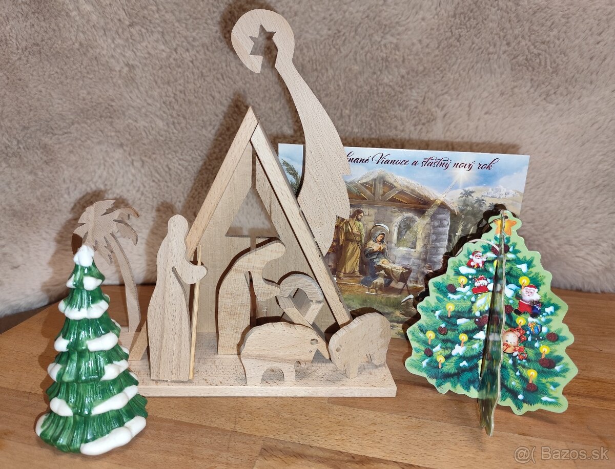Vianočný Betlehem, drevený + strom vpredu je keramický
