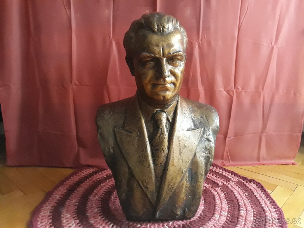 Ponúkam na predaj bronzovú bustu z prvej polovice 20.storočia"Klement Gottwald" od českého maliara-sochára Viktor Dobrovolný(1909-1987)z jeho tvorby socialistického realizmu,vytvorená na politickú objednávku.Diela vystavované v národných galériach...výška 65cm,šírka 45cm značenie vpravo dolu"V.D. 49 ...