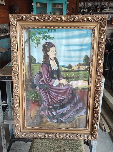 krásny maľovaný obraz Dáma vo fialovom, autor neznámy v krásnom starom ráme v top stave, rozmer na foto, rám o sebe má tu hodnotu, cena 70€, len osobný odber Želiezovce, Šturovo a okolie , viac info telefonicky