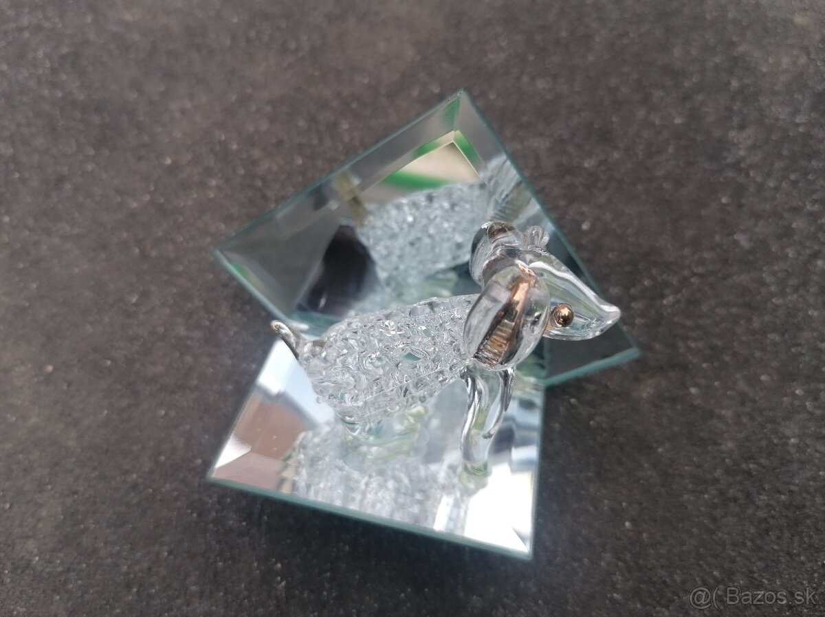Predám krásnu sošku psíka pred zrkadlom, z číreho zdobeného skla, vyrobené koncom storočia. Top stav, bez poškodenia. Cena 8€.