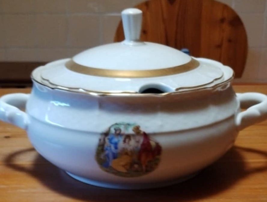 Predám porcelánový riad tri grácie, 1x polievková misa, 6x plytký tanier a 5x hlboký tanier, 1x solnička. Osobný odber v Brezne. 0903926186