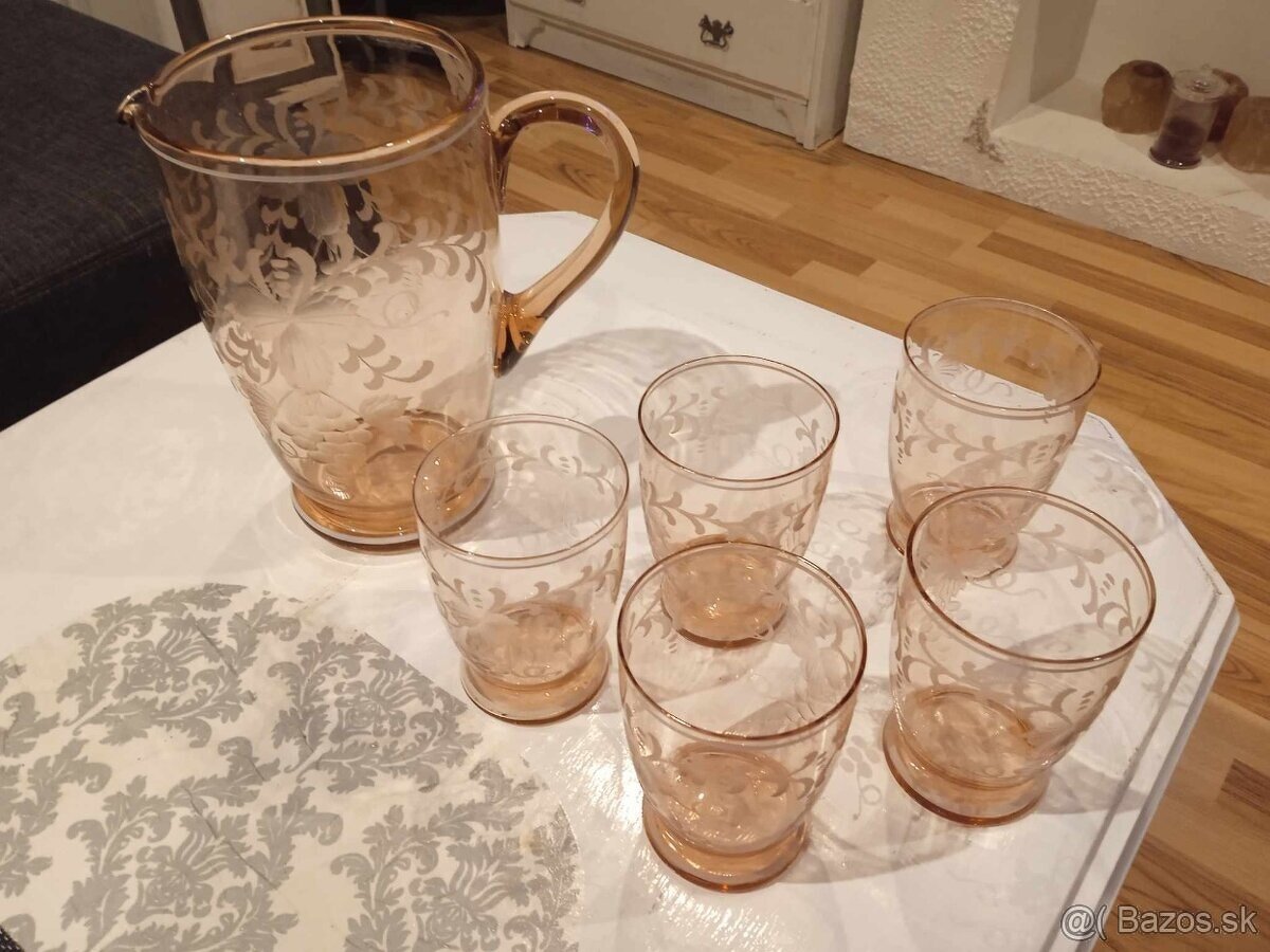 Ružový krčah s pohármi