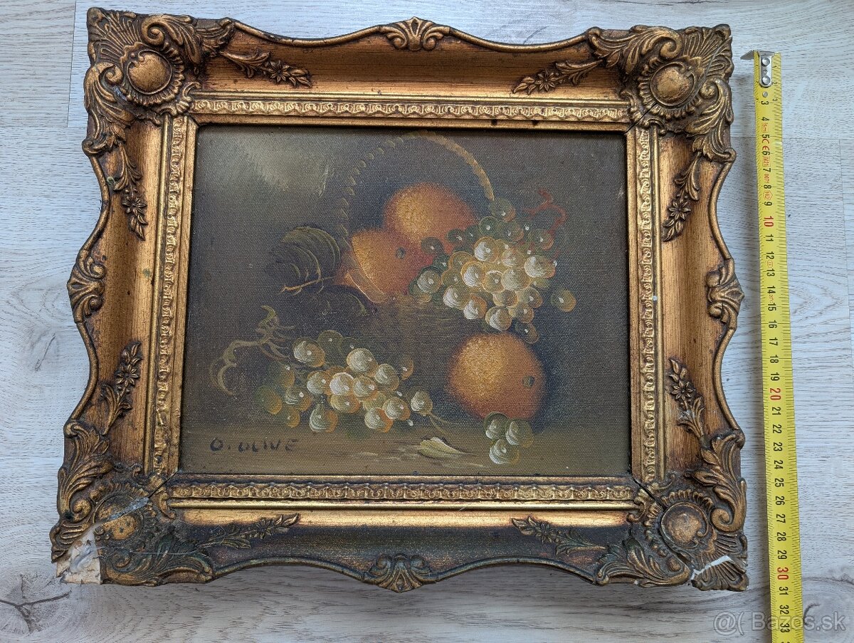 Starožitný obraz v zaujímavom drevenom ráme. Cena 30€. Rozmer 35 x 30 cm.
