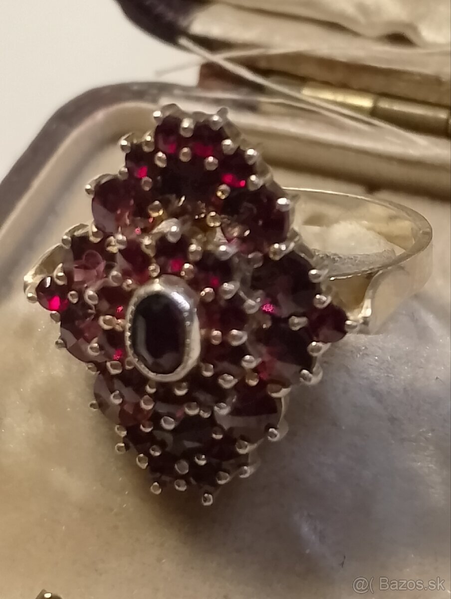 Strieborný prsteň s Českym granátom ;pozlatene
