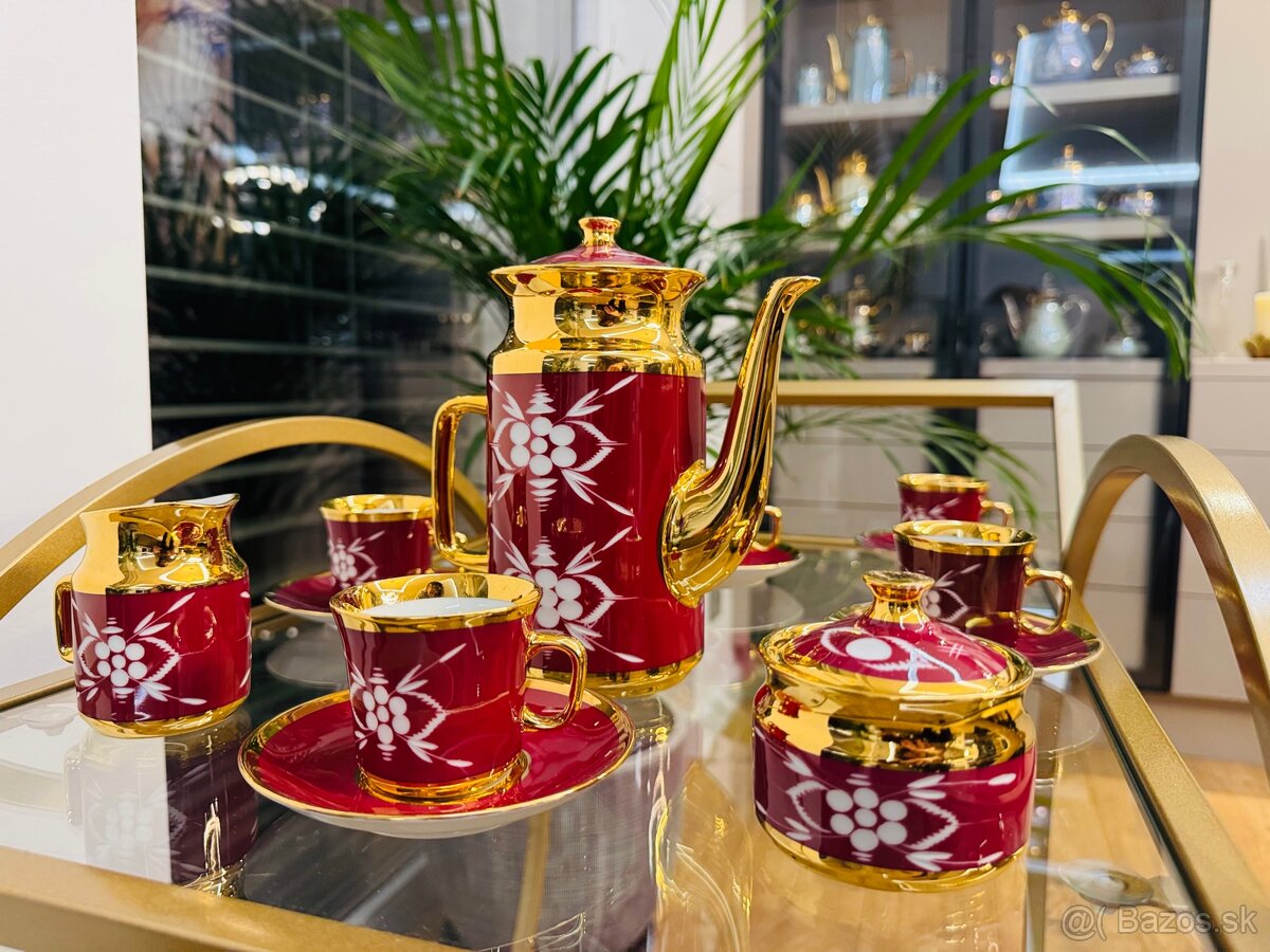 Ponúkam na predaj krásnu a vzácnu porcelánovú súpravu zo zbierky Valaska Belá – Kristál Czechoslovakia vo vyhladávanej krvavej červenej farbe.