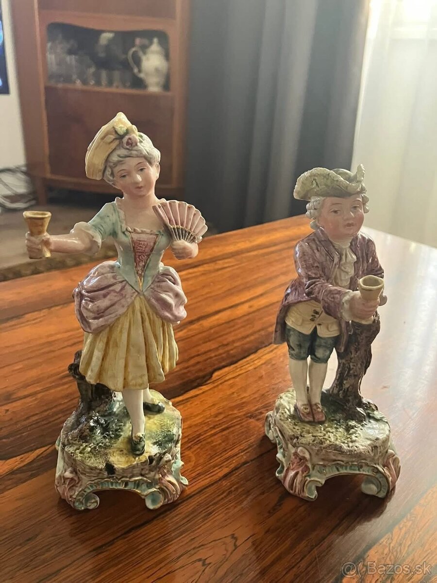 Ponukam na predaj dve stare Royal Dux sosky znacene cislom, vyska pan je 15 cm a dama je cez 16 cm, osobny odber Trencin alebo Zasielkovna, na dobierku neposielam, cena 110 euro spolu.kontakt mailom.