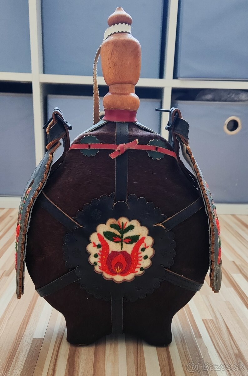 Predám starožitnu fľašu,krásna zachovala, potiahnutá asi kravskou kožou aj so srsťou,kožené detaily,z oboch strán vyzerá rovnako.bez poskodenia objem 0,7-1liter