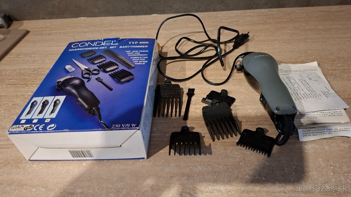 Predám elektrický zastrihávač vlasov a brady značky CONDEL, model Typ 4000. Obsahuje 4 nástavce rôznych veľkostí, čistiacu kefku, pôvodnú krabicu a návod. Je plne funkčný, minimálne používaný, vhodný na domáce strihanie pre celú rodinu. Ideálny ako lacná alternatíva na základné úpravy vlasov či brady.