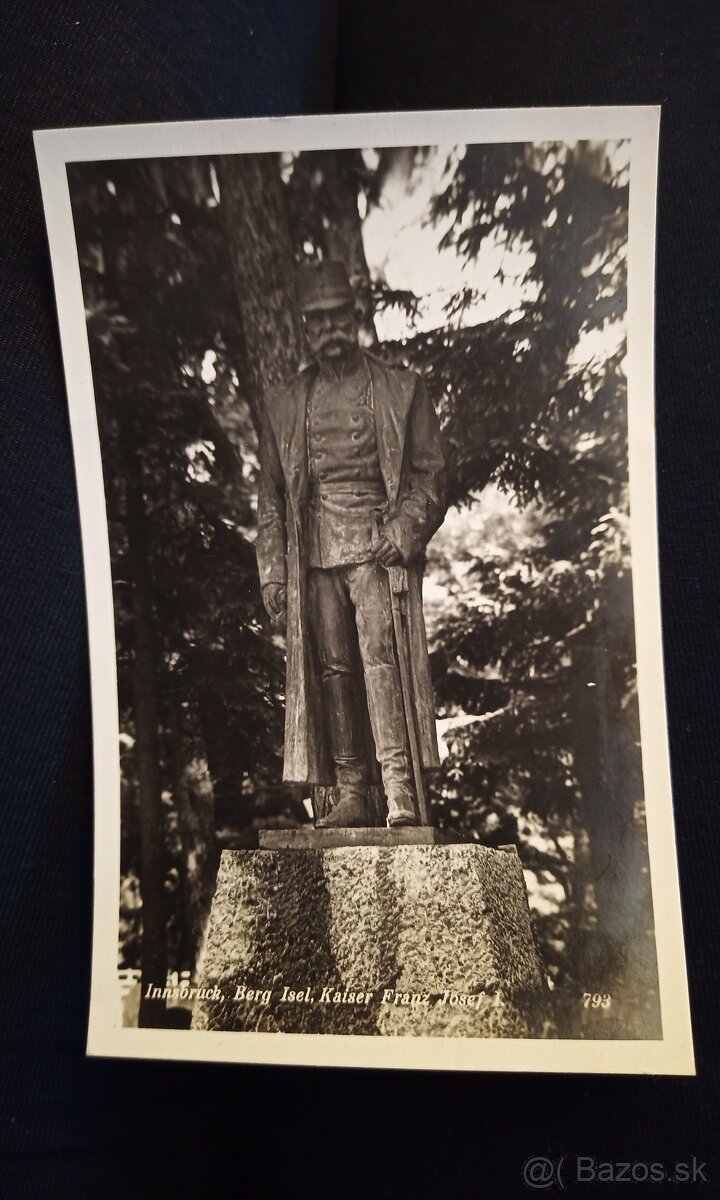 Predám starú pohľadnicu, na ktorej je socha cisára Františka Jozefa v Innsbrucku. Neprešla poštou. Stav veľmi dobrý. Cena 3€ + poštovné. Pozri aj moje ďalšie inzeráty.
