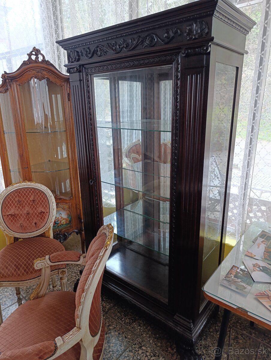 Predám krásnu starú vitrínu na labách.Má 3 sklenené police.Vhodná aj ako knižnica či po malých úpravách ako skriňa na zbrane.Zámok funkčný.Iba osobné prevzatie.