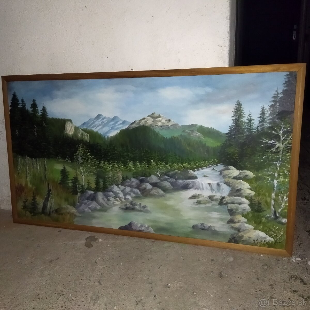 predam stare obrazy: velky obraz: les,potok:malba na platne-135x75cm obraz:Ovocie,sololit 100x46cm-(rozmer bez ramu-36,5x90,5cm) obraz: Les-platno nalepene na sololite 105x76cm-(rozmer bez ramu-95x66cm)... a 2 obrazy-drevena intarzia. ..cena: dohodou.