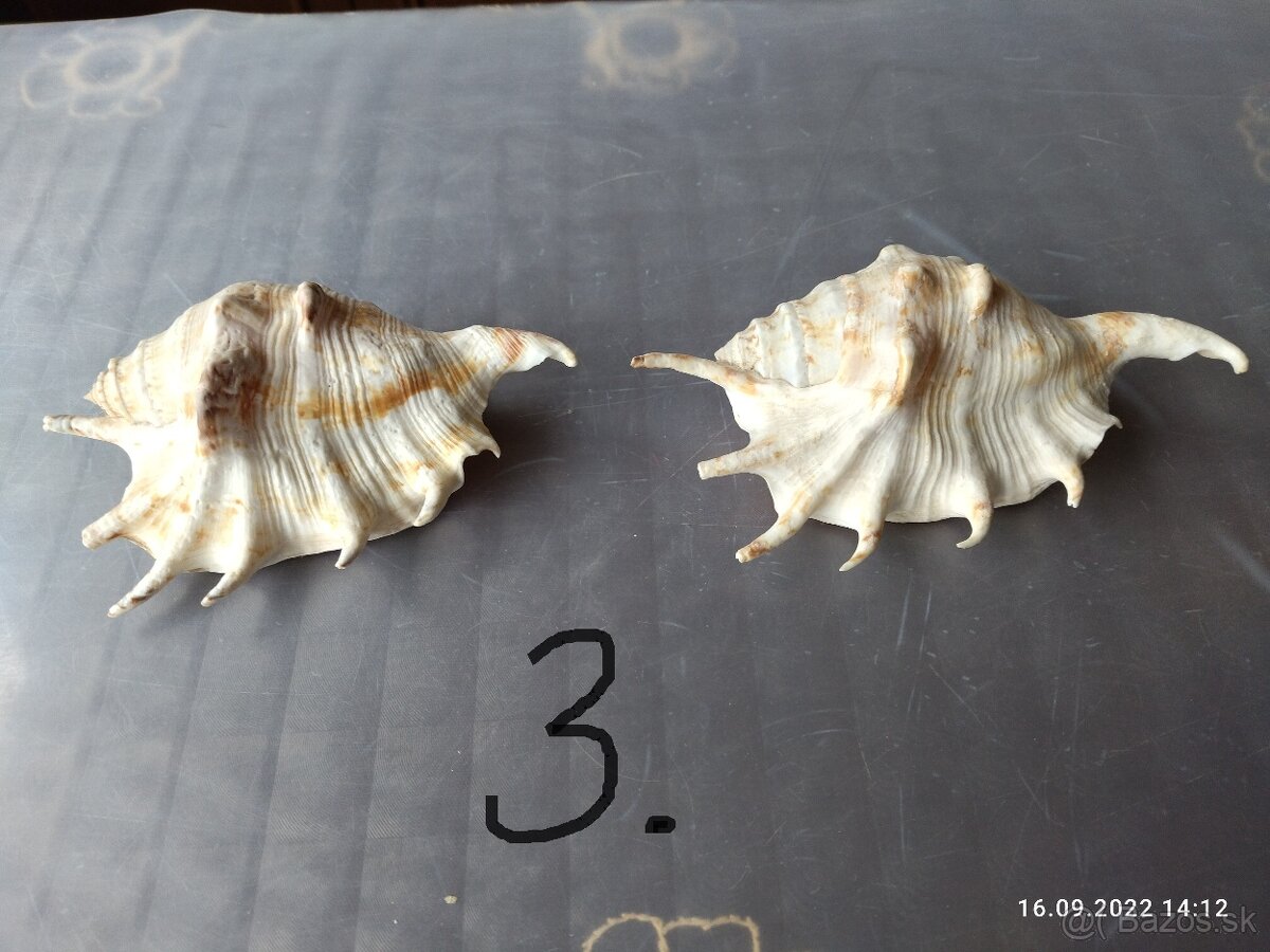 Ponúkam na predaj tieto mušle do akvária alebo ako ozdobu. Rozmery v 5cm, š 8cm, d 14cm.