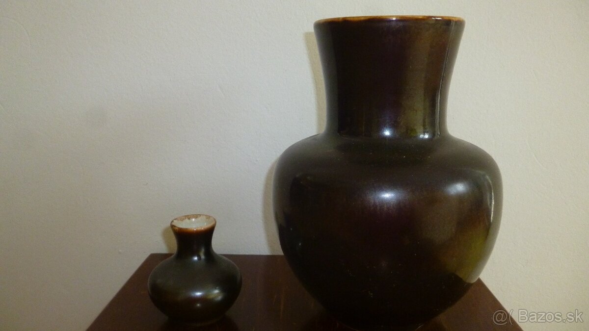 Ponúkam na predaj dve keramické vázy na obrázku, najradšej spolu, ale dá sa aj jednotlivo: väčšia-výška 22cm, cena 8€ a menšia-výška 7cm, cena 3€ (pri kúpe obidvoch spolu cena 10€) + poštovné, uprednostňujem platbu na účet, email: sofe@centrum.sk,