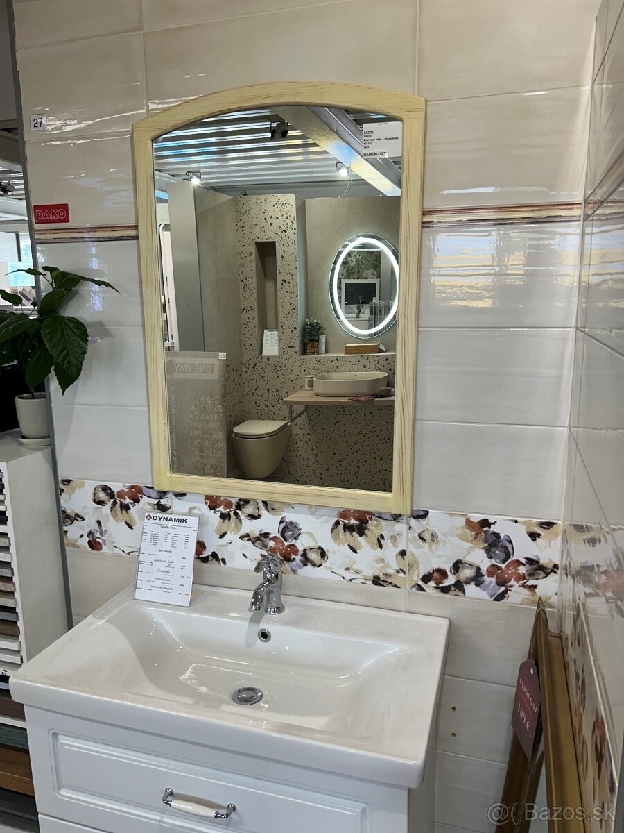 Predám zrkadlo Sapho Retro - drevený rám - masív smrek, farba starobiela. Použité len ako vzorka v štúdiu. Pôvodná cena 319e.