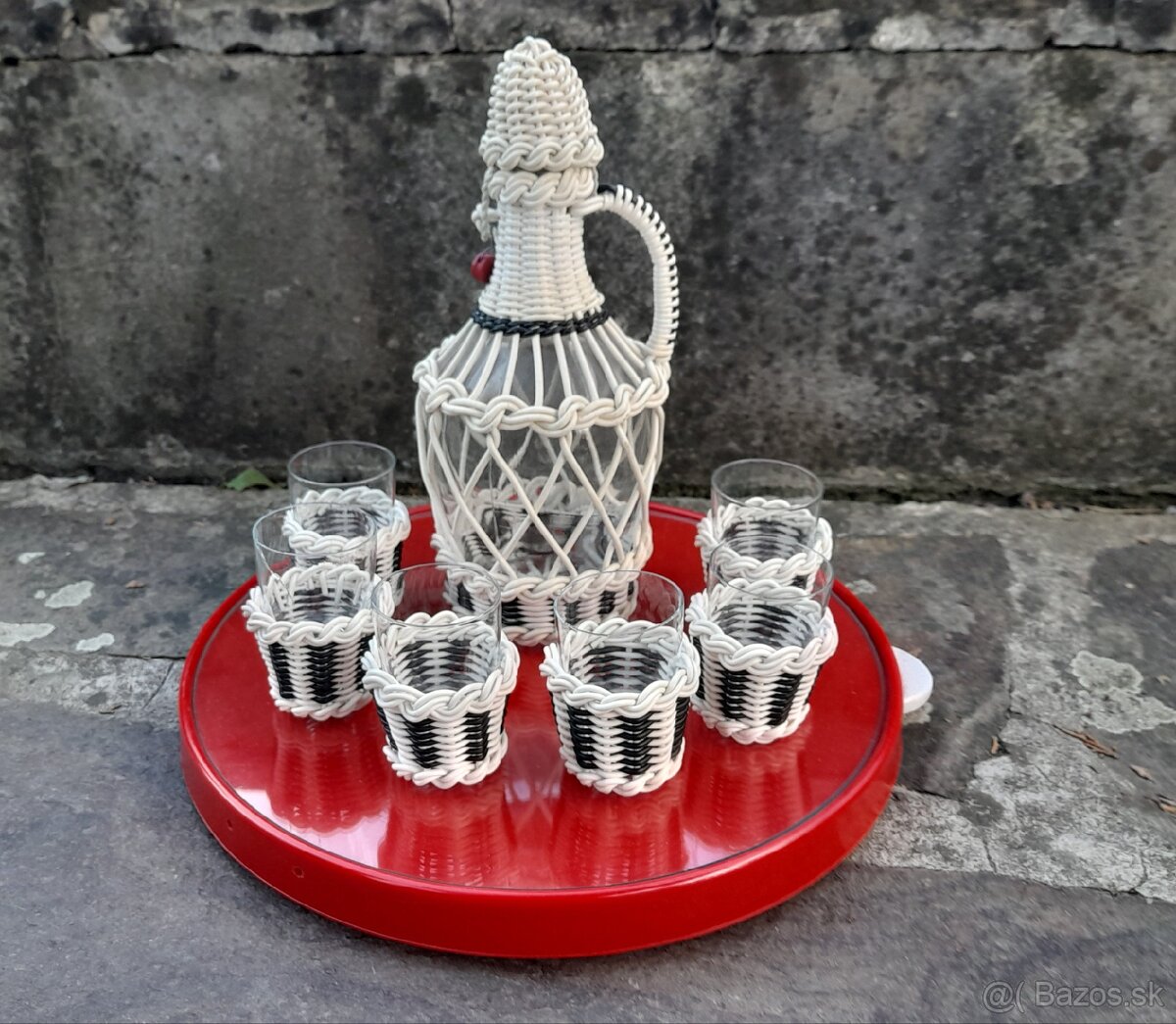 Set vypletaný bielym a čiernym drôtom....demižónik s pohárikmi 5ks,