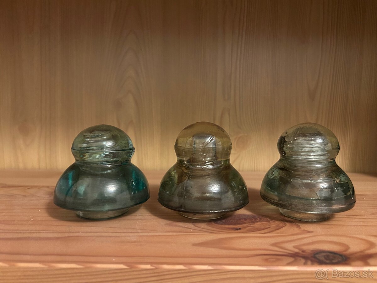 Ponúkam na predaj 3 ks starých sklenených elektrických izolátorov.