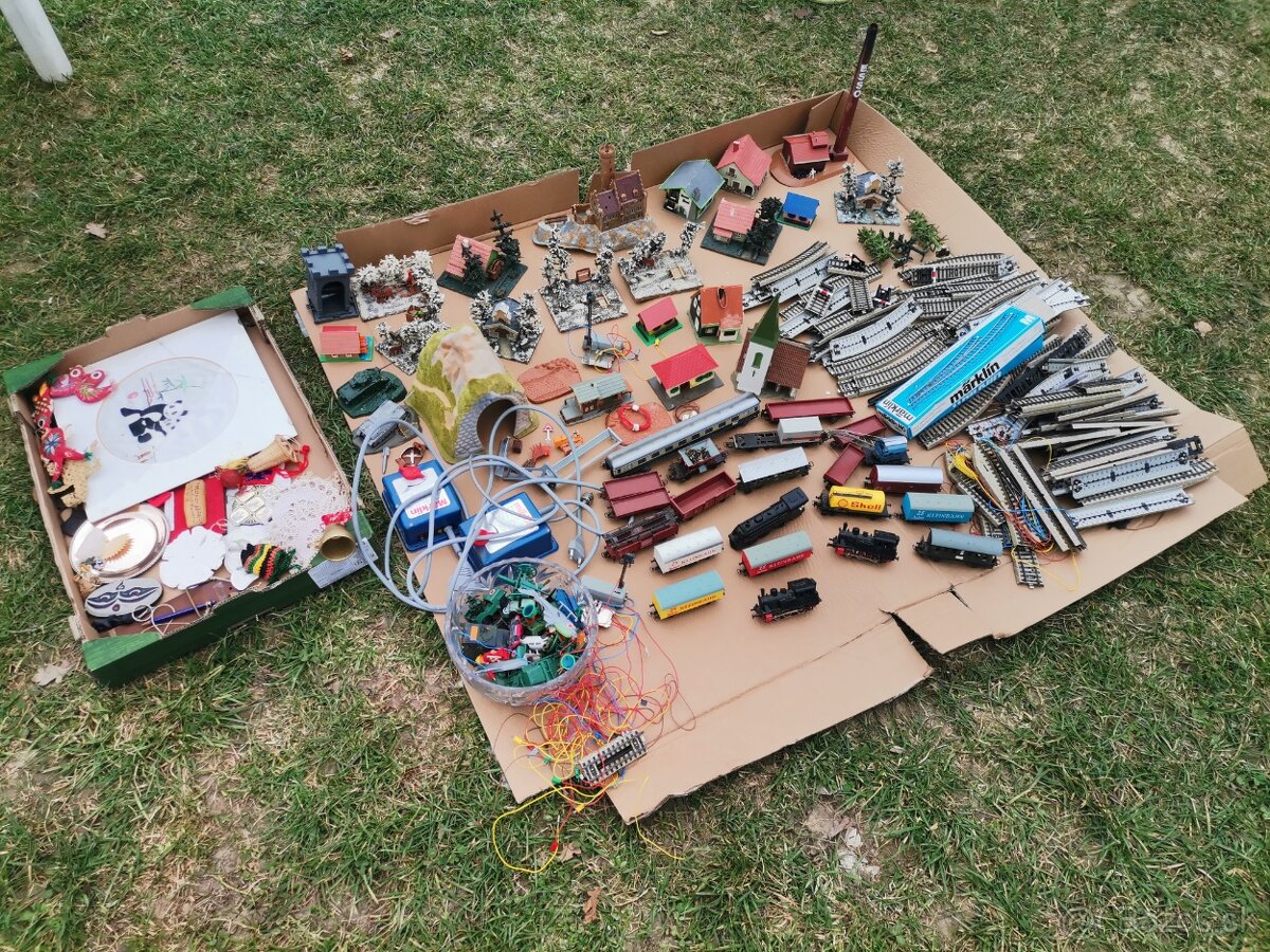 Predám starú modelovú železnicu, je toho veľmi veľa, je tam niekoľko vlakov, veľa vagónov, koľajníc, budov, všetko čo je na fotkách