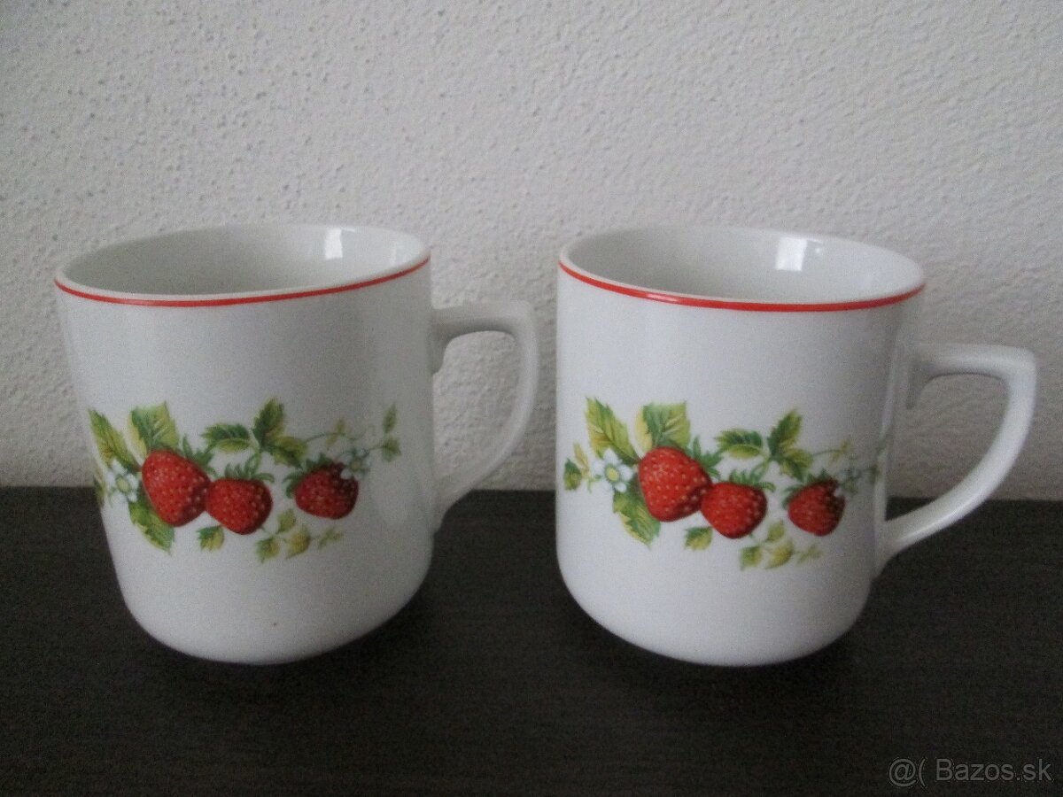 Predám 2 ks hrnčekov Lubenec s názvom Jahody, 60te roky, nepoškodené.
