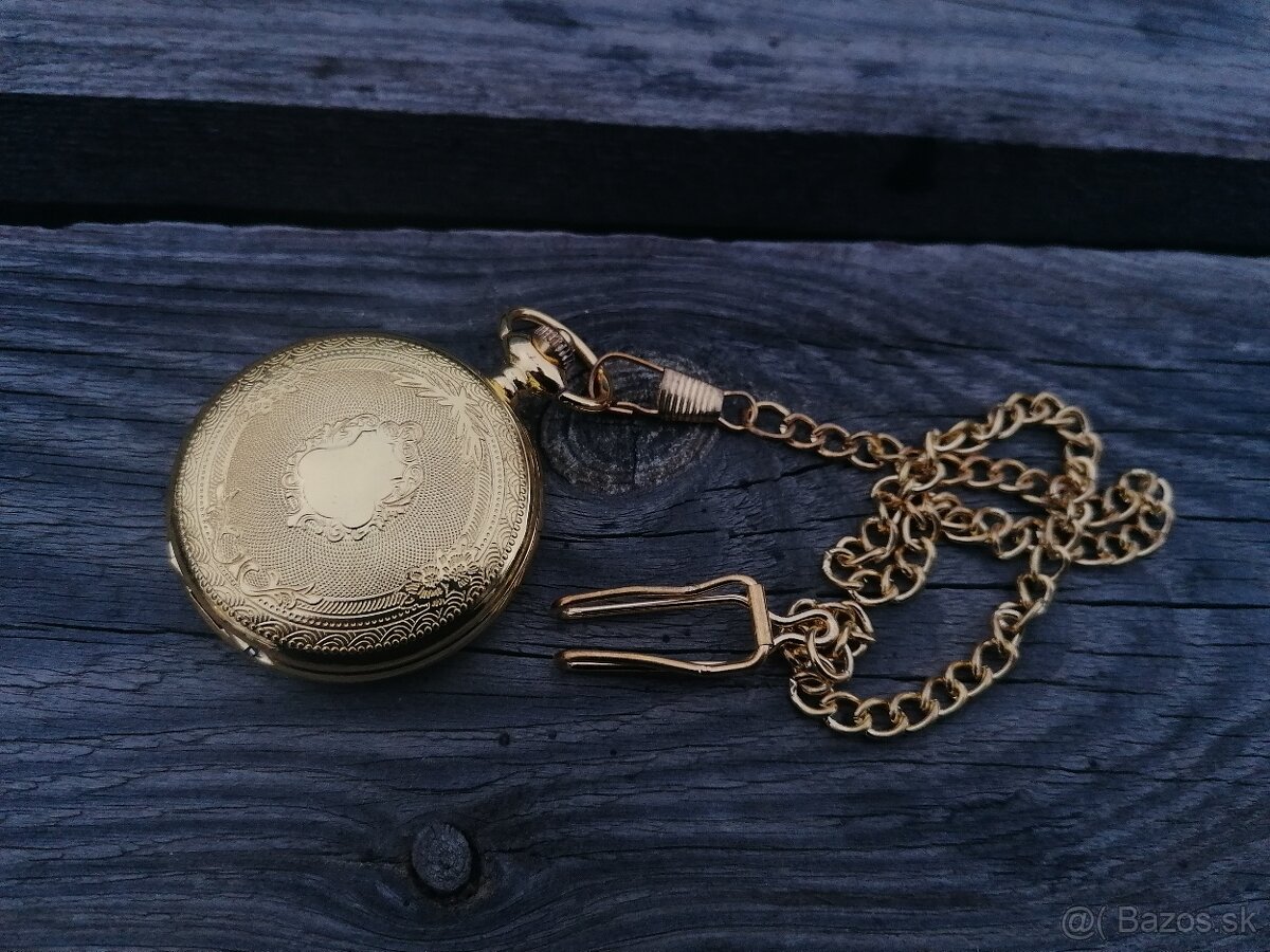 Predám vreckové hodiny zlaté. Plne funkčné, 100% stav. Cena 15€.