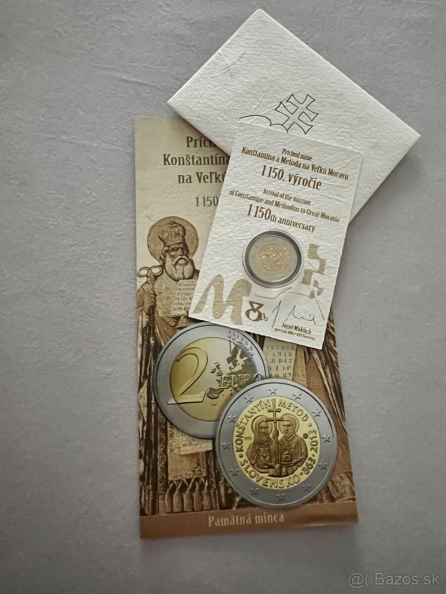 Predám slovenskú pamätnú 2€ mincu z roku 2013 Cyril a Metod v najvyššej kvalite proof.