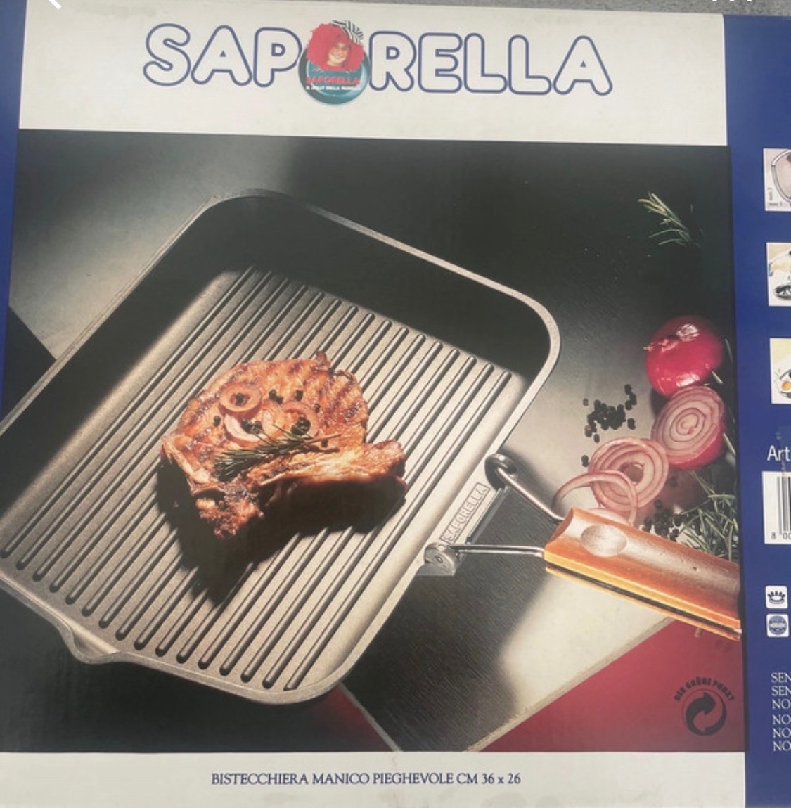Táto grilovacia panvica Saporella je navrhnutá pre zdravé varenie bez nutnosti použitia veľkého množstva tuku. Materiál: Zliatina hliníka s nepriľnavým povrchom. Vlastnosti: Skladacia rukoväť pre ľahké skladovanie. Výhody: Navrhnutá tak, aby produkovala menej dymu a zápachu