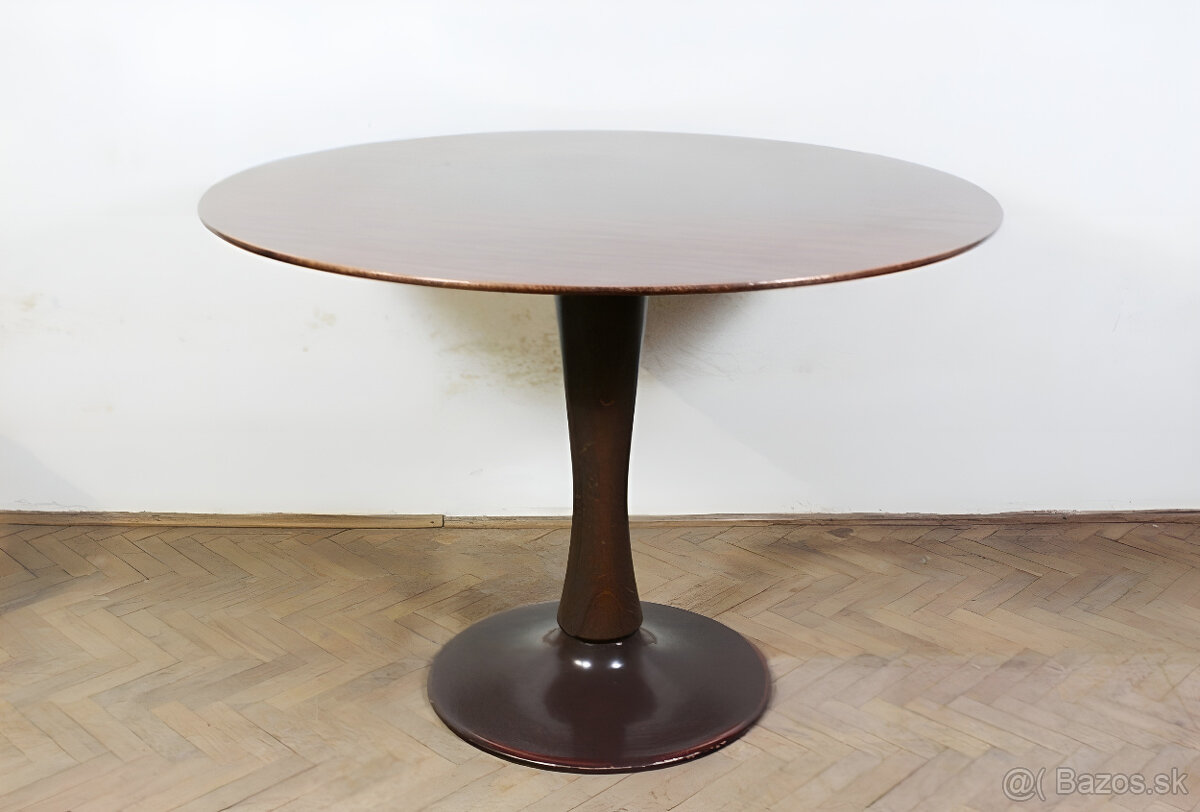 ponúkam na predaj retro stôl,vyrobený firmou Dřevotvar Jablonné nad Orlicí okolo roku 1970.stôl je určený na renováciu.výška je 75 cm a priemer vrchnej dosky je 120 cm.ideálne osobné prevzatie v okrese Topoľčany,stôl je celkom ťažký.na prípadné dotazy rád zodpoviem.kontaktujte ma prosím cez formulár,číslo je vymyslené.ďakujem