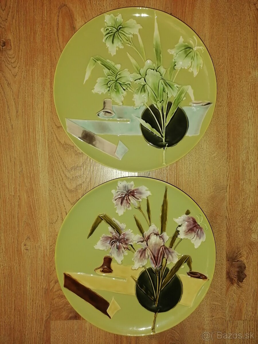 Predám staré secesné majolikové taniere,plastický vzor,párové,nepoškodené.