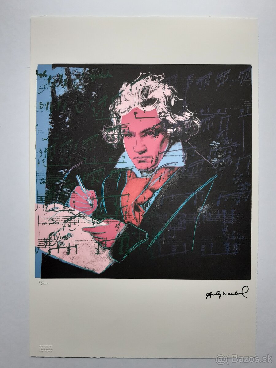 Predám litografiu „Andy Warhol – Beethoven“, č. 68 z limitovanej edícii 100 kusov, s certifikátom, rozmery 38,3x56,3 cm.