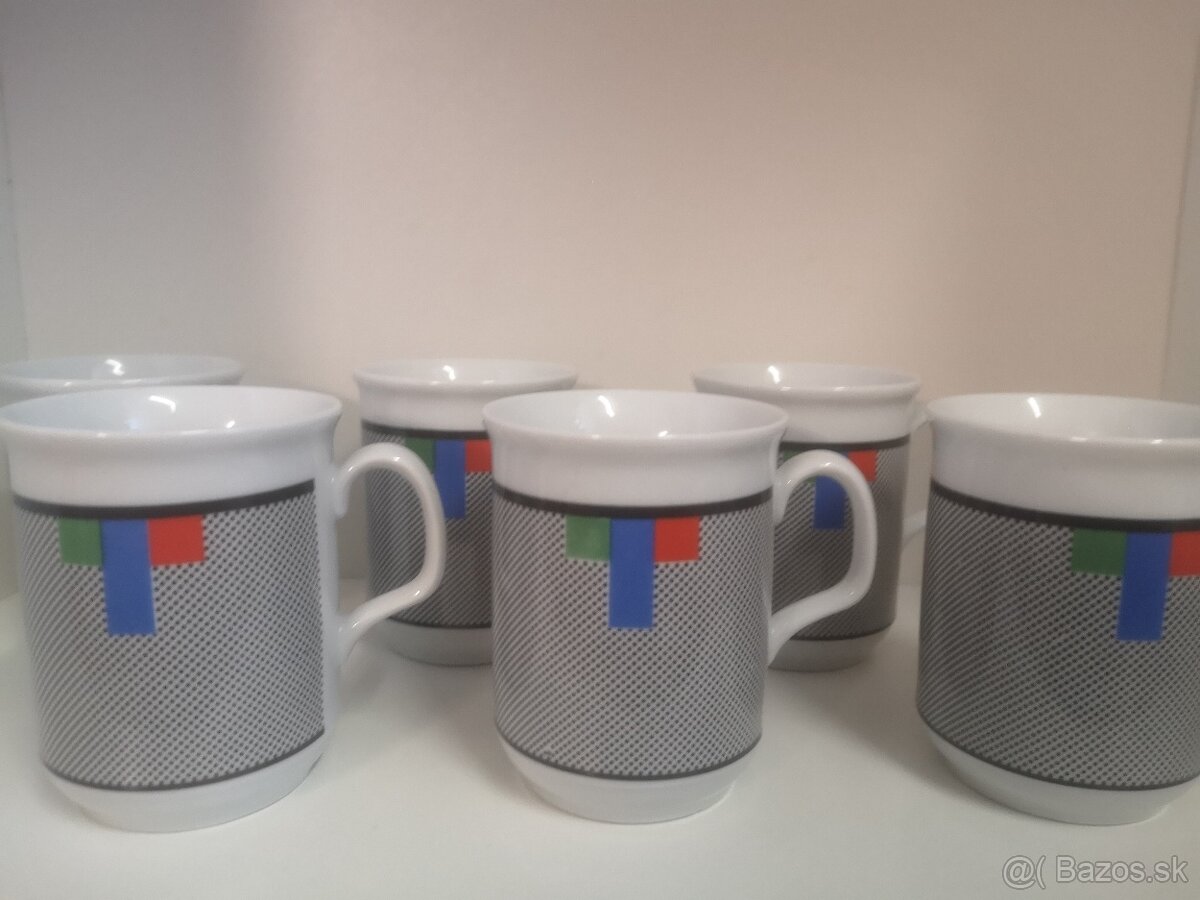 Porcelánové, retro, raňajkové šálky, zaujímavý, geometrický vzor, 6 kusov. Značené: ROYAL DUX, BOHEMIA, CZECHOSLOVAKIA. Stav, ako nové, bez oťukov. Výška - 10 cm, šírka - 7,7 cm /bez uška/. Cena + poštovné. Pošlem po prijatí platby poštovného na účet. Pozrite si moje ponuky, možno Vás niečo zaujme. To čo je v ponuke je aktuálne.