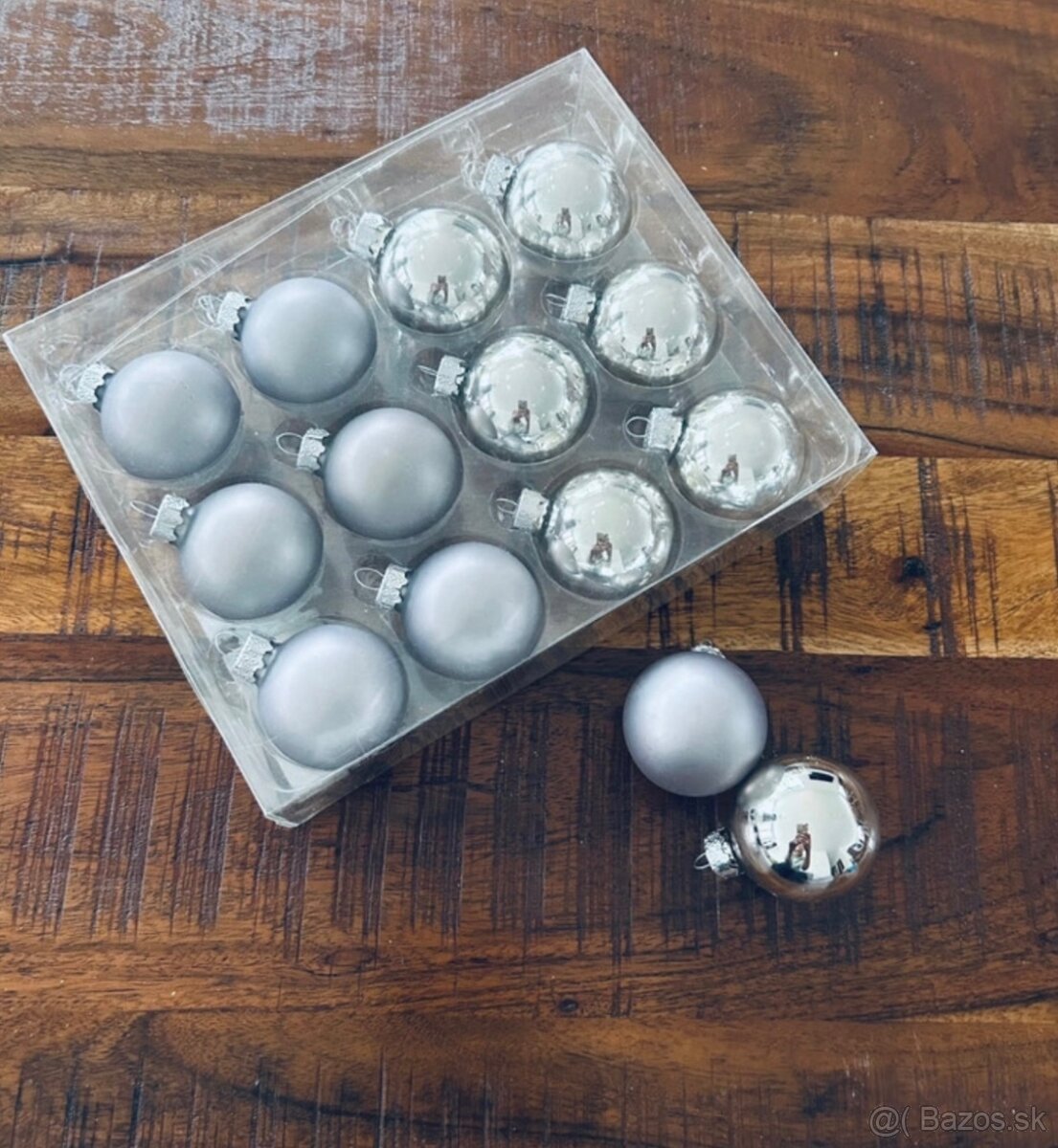 1. Set vianočných sklenených gúľ 12ks (6 lesklých a 6 matných strieborných gúľ)