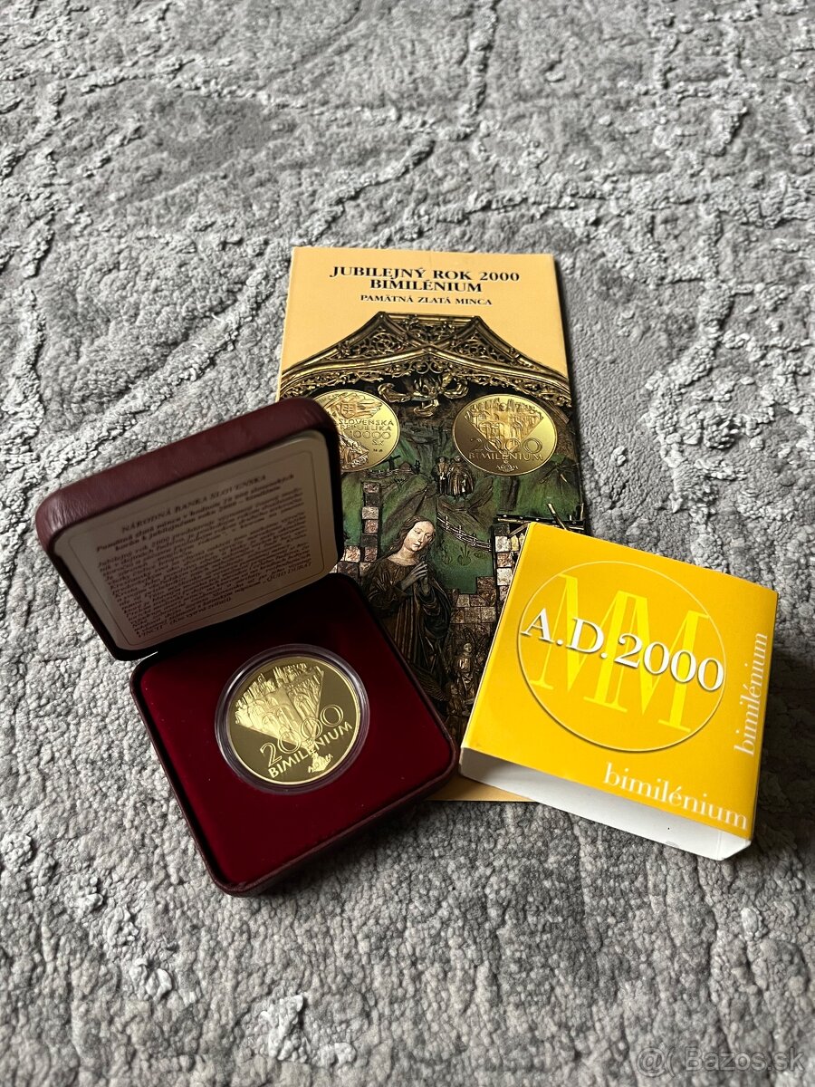 Predám zlatú zberateľskú mincu z roku 2000 10 000 SK Bimilénium v 100 % stave, v najnižšom náklade spomedzi zlatých zberateľských mincí, len 3 500 ks spolu s informačným letákom - všetko čo k minci patrí. Platba prevodom na účet, alebo osobne v Bratislave v starom meste. Mám aj iné zlaté zberateľské mince.