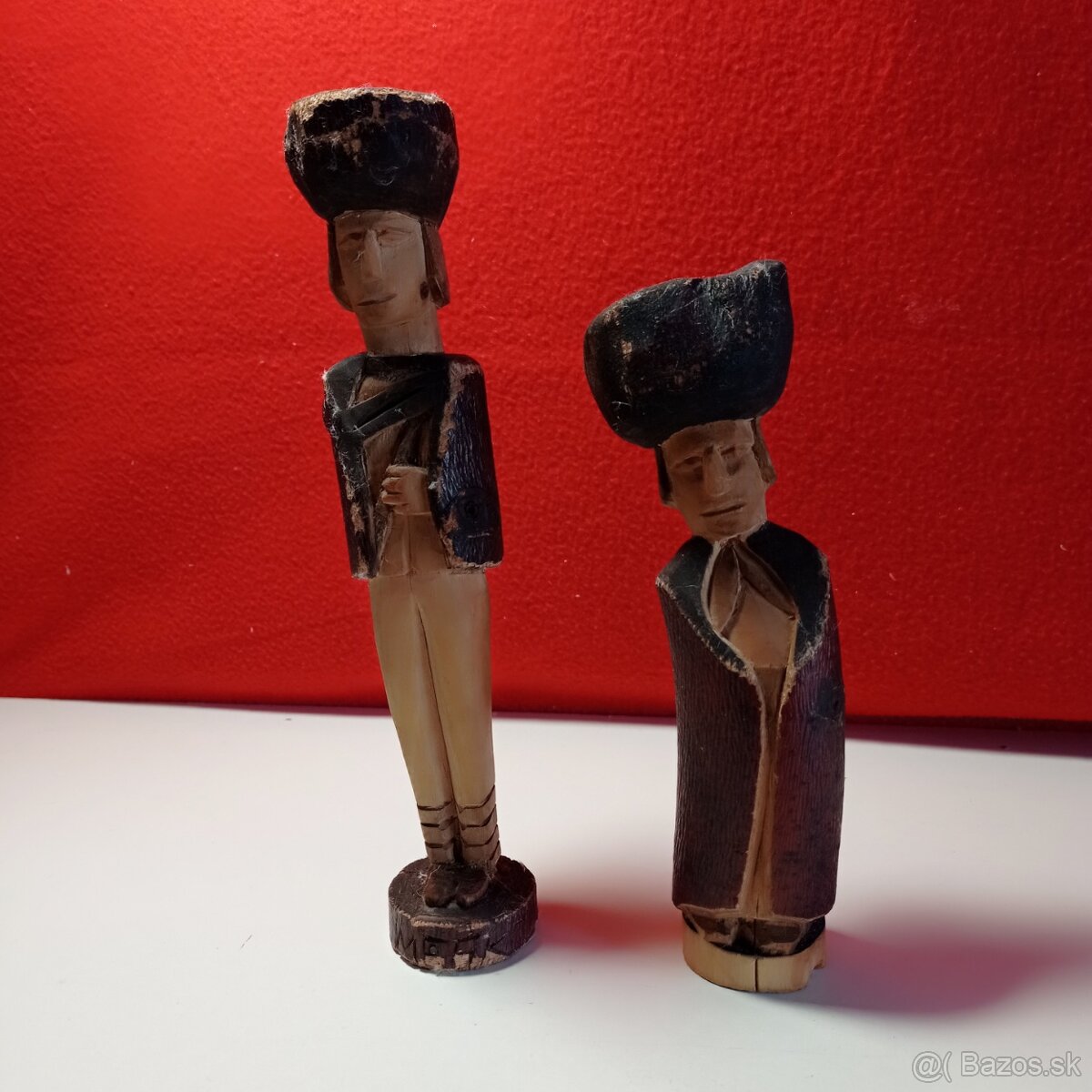 Ručne rezané drevené postavičky dvoch pastierov -Kubka a Maťka. Dlhé roky stáli na polici v chalupe. Ani vek ani pôvod nie su zrejmé. Stav je adekvátny veku a aj (pravdepodobne) hre detí. Zreteľné sú opravy aj, dnes už nezvestné, drobné detaily. Napriek tomu je to veľmi milá dekorácia. V BA osobne , alebo na dobierku (+6 €)
