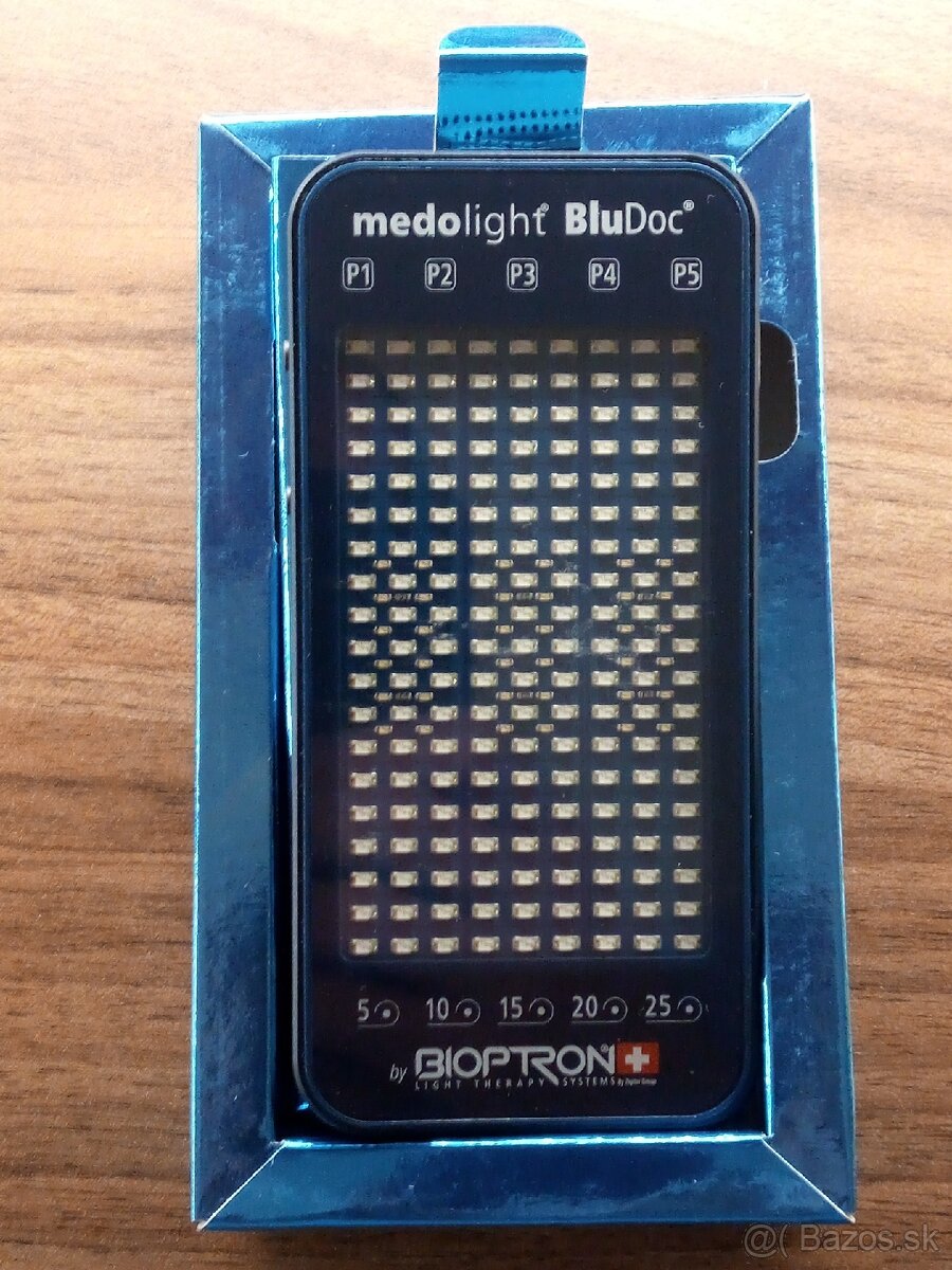 Bioptron Medolight BluDoc. Certifikovný zdravotnícky prístroj. Riešenie starostlivosti pre zdravo vyzerajúcu pokožku a úľavy od bolesti. Inovácia spočíva v jedinečnej kombinácii vlnových dĺžok modrého svetla, jeho frekvencie a vedecky podložených kozmetických postupov.
