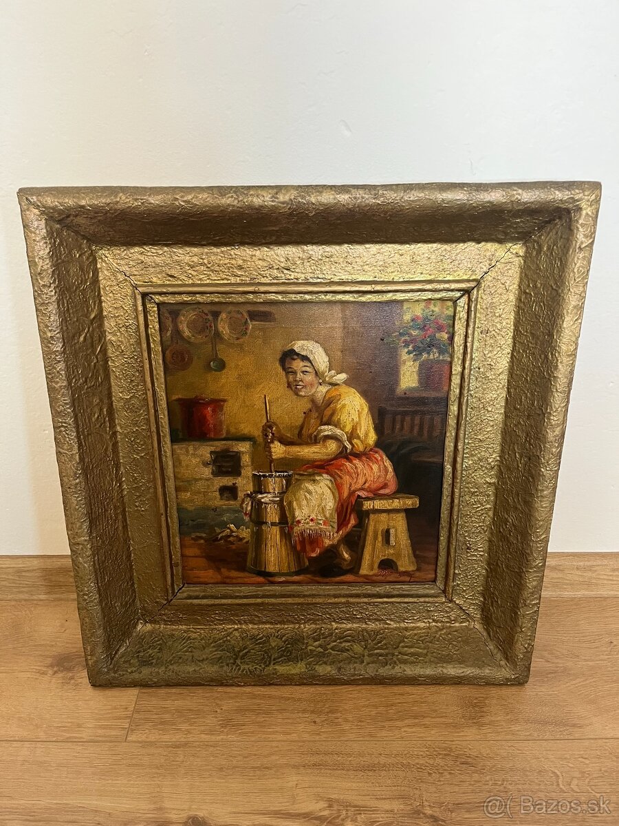 Predám starožitnú olejomaľbu na plátne z roku 1951. Obraz je nepoškodený, v drevenom ráme, o rozmere cca 50x50.