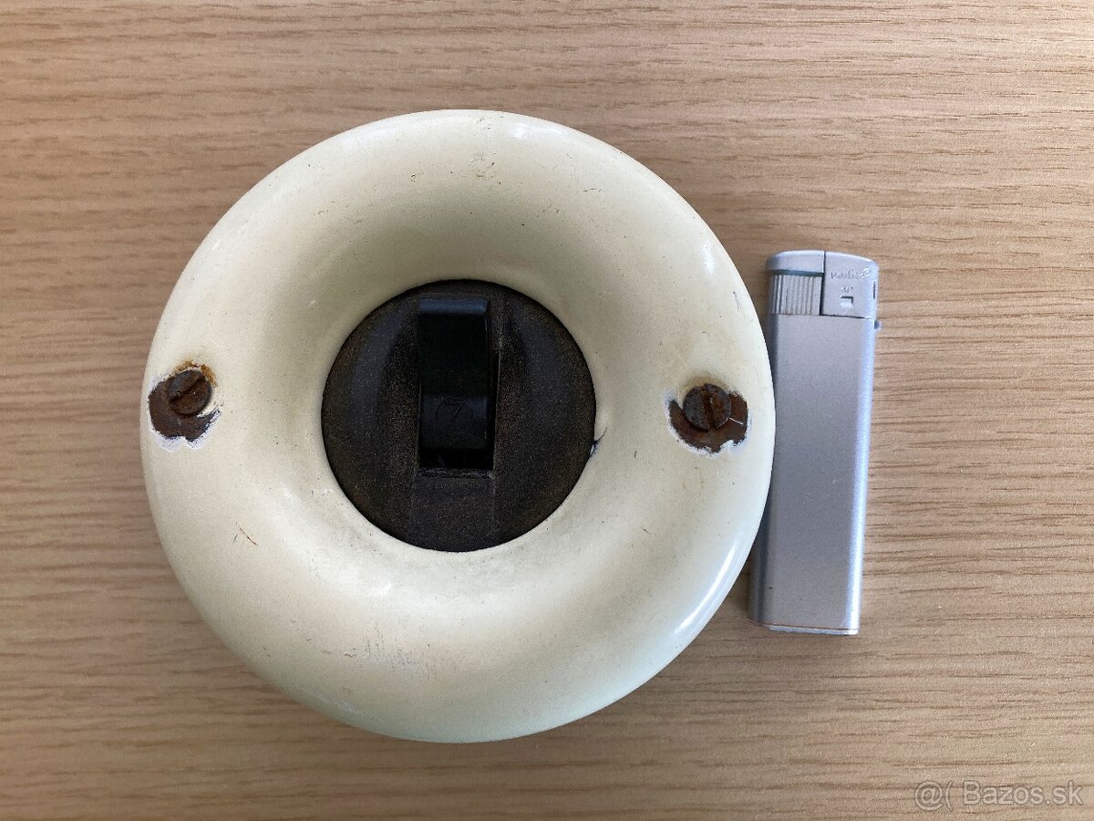 Predám funkčný starý retro smaltovaný vypínač. Veľký - priemer 11 cm.