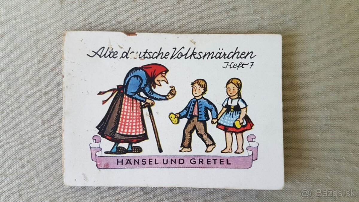 Predám malú rozprávkovú nemeckú knižku 10 strán s obrázkami a textom z obdobia tretej ríše...malé poškodenie v zadnej časťi,ale nezasahuje do grafiky a textu...vhodné pre zberatela....
