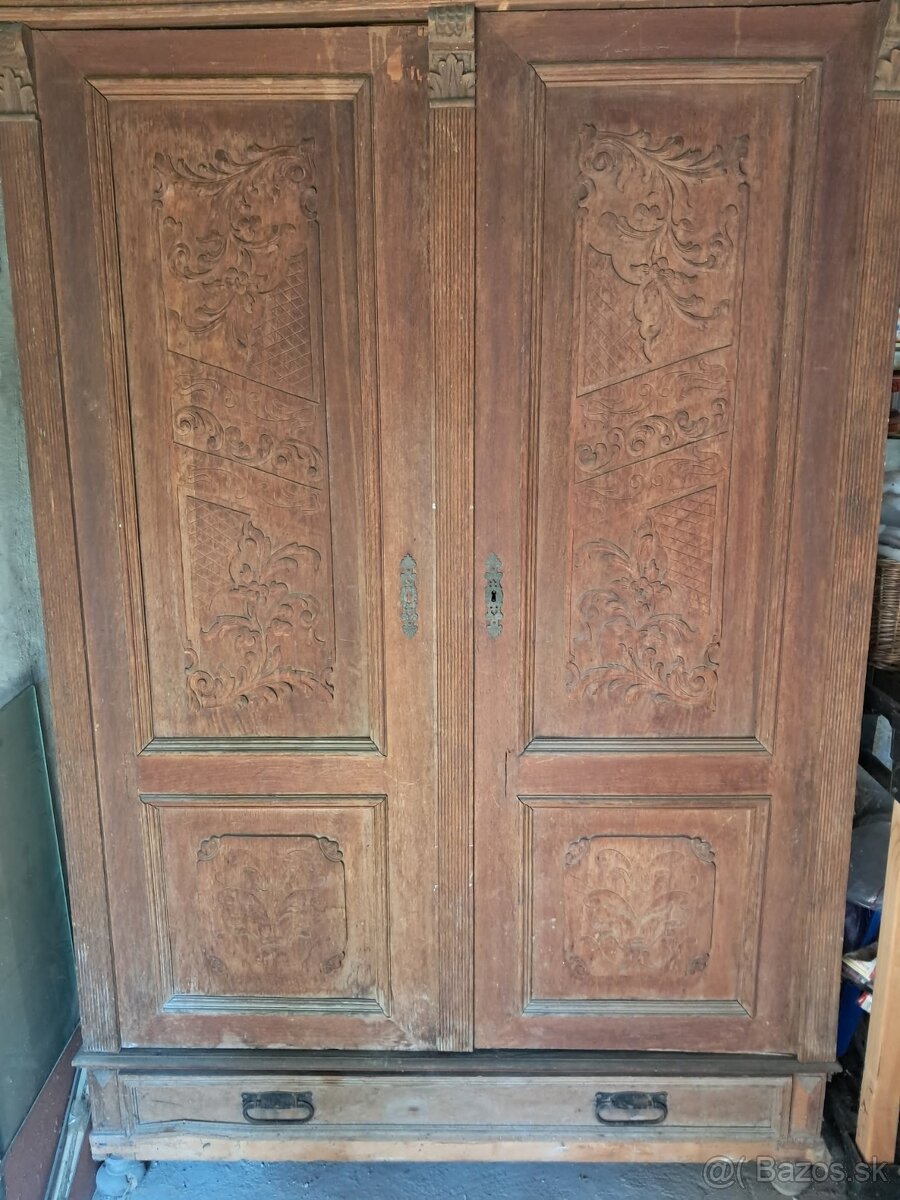 Starožitá Vyrezavaná šatníkova skriňa - [11.3. 2026]Starozitna vyrezavana šatníkova skriňa dĺžka 177cm výška 185cm hĺbka 62cm
