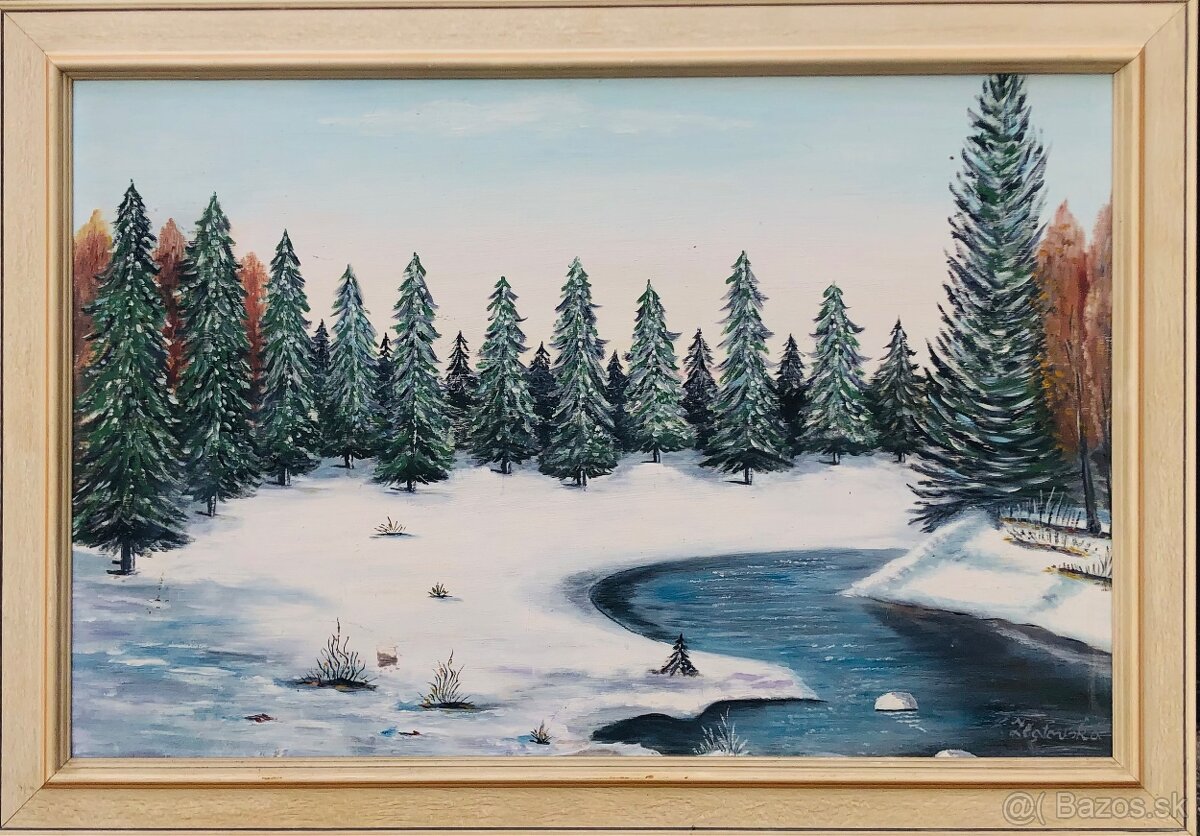 Obraz zimna krajinka - [3.2. 2026]Predam olejomalbu zimnej krajinky.Autor Bielzala rok 1987.Rozmer 102x59cm.